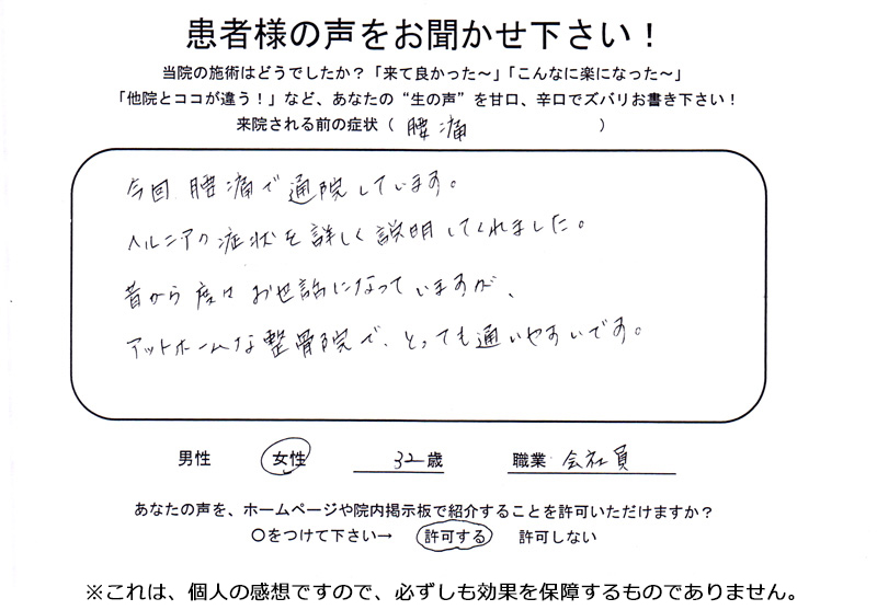 その他は、ヘルニアはいっぱいありますので、受診時にお答えします。